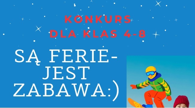 Zapraszam chętnych uczniów klas 4-8 do udziału w konkursie plastycznym pt. "Są ferie- jest zabawa". Należy wykonać pracę plastyczną na formacie A3 w technice kolażu- sklejania obrazu z różnych materiałów. Liczy się ciekawe przedstawienie tematu.