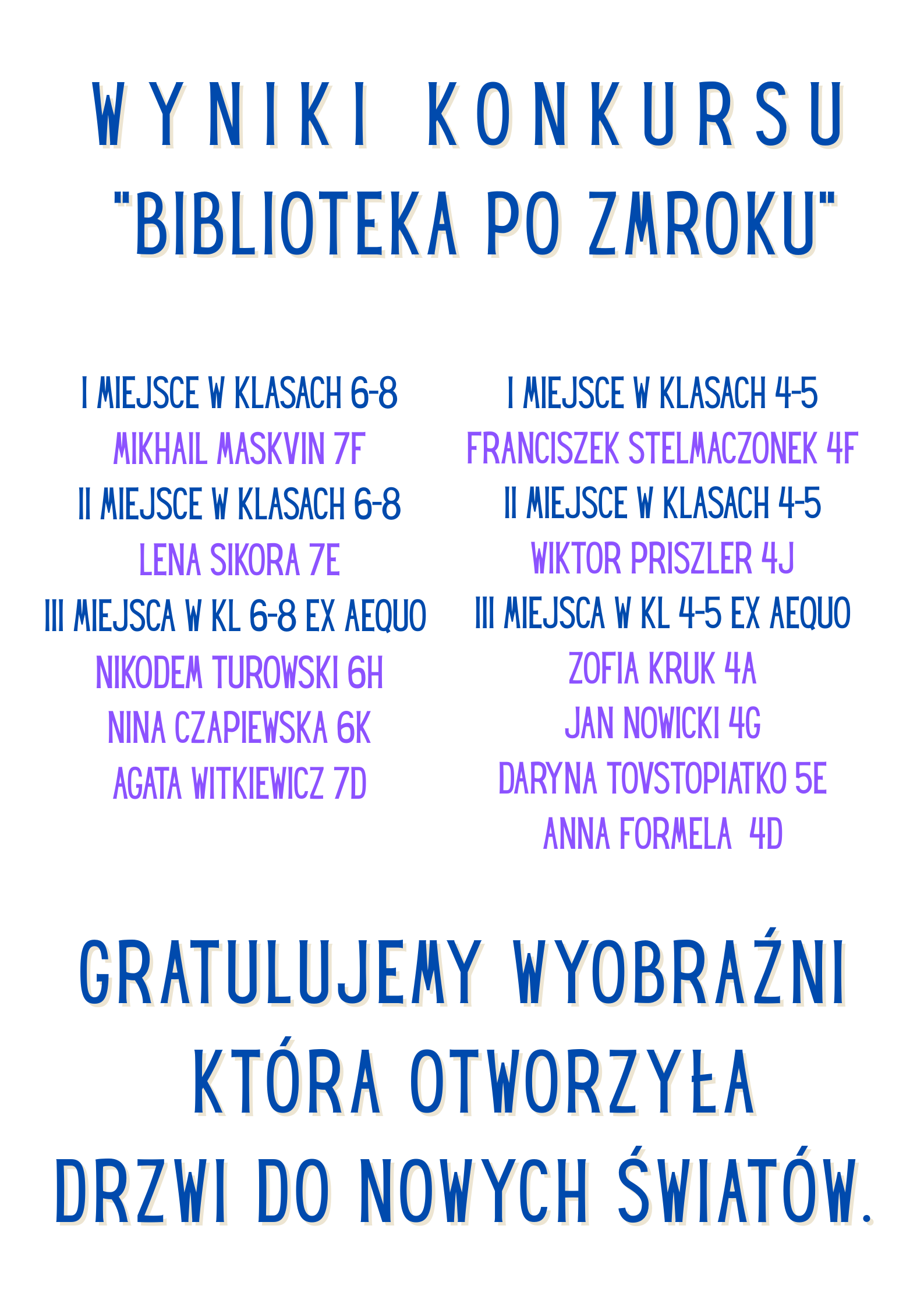 Wyniki konkursu bibliotecznego Biblioteka po zmroku.